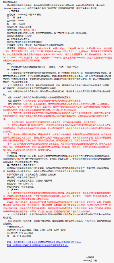 2024年9月30日中儲糧儲運公司玉米競價采購專場公告