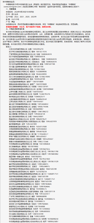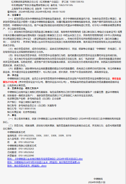 2024年9月30日中儲糧進口玉米(轉基因)競價銷售專場公告