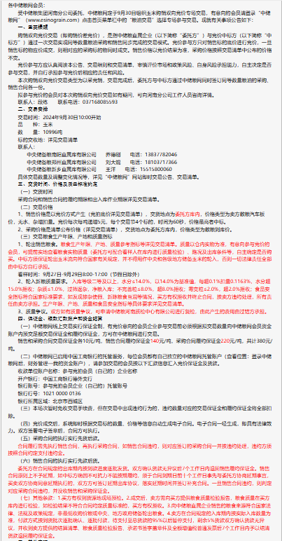 2024年9月30日中儲糧河南分公司玉米購銷雙向競價交易專場公告