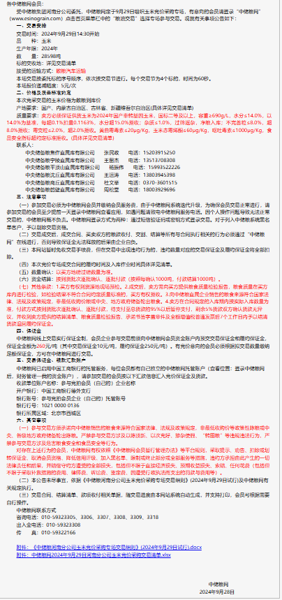 2024年9月29日中儲糧河南分公司玉米競價采購專場公告