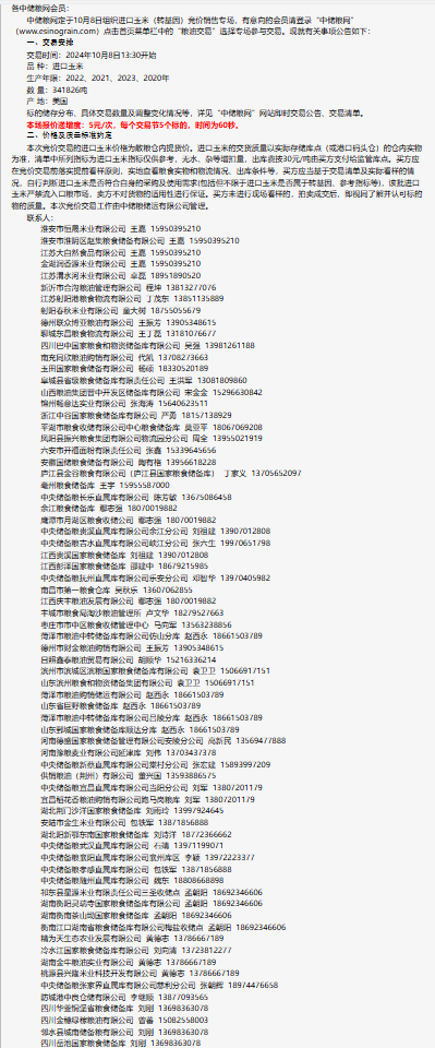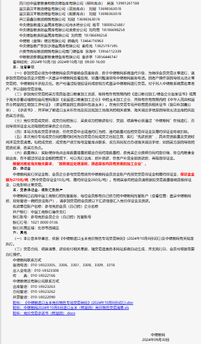 2024年10月8日中儲糧進口玉米(轉基因)競價銷售專場公告