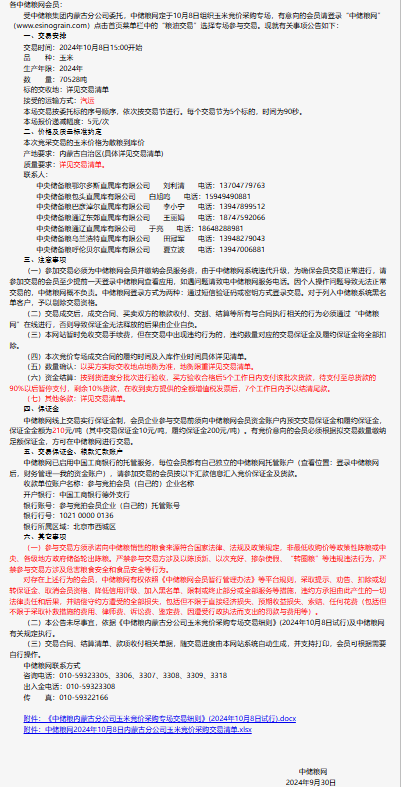 2024年10月8日中儲糧內蒙古分公司玉米競價采購專場公告