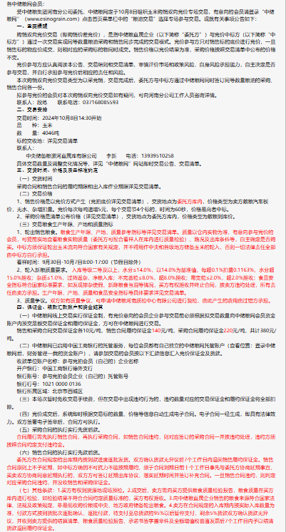 2024年10月8日中儲糧河南分公司玉米購銷雙向競價交易專場公告