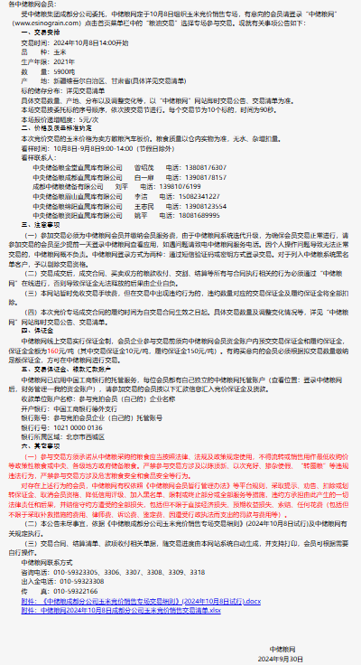 2024年10月8日中儲糧成都分公司玉米競價銷售專場公告
