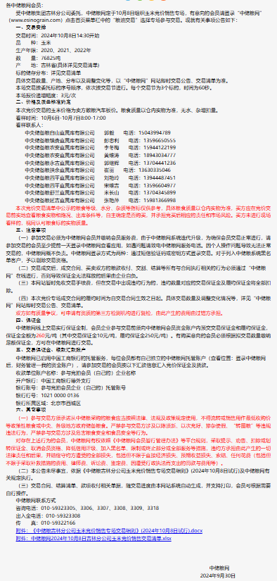 2024年10月8日中儲糧吉林分公司玉米競價銷售專場公告
