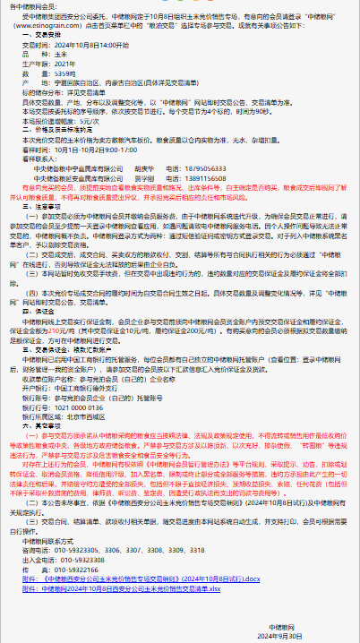 2024年10月8日中儲糧西安分公司玉米競價銷售專場公告