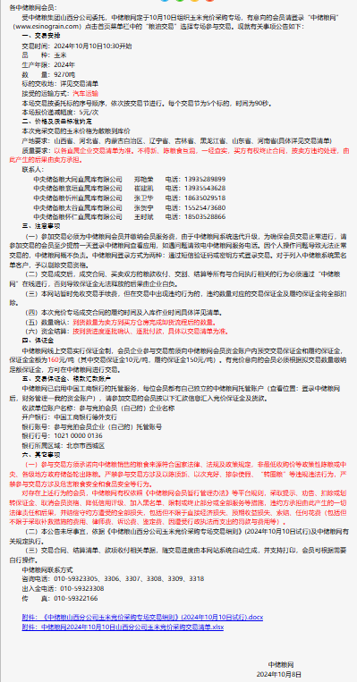 2024年10月10日中儲糧山西分公司玉米競價采購專場公告