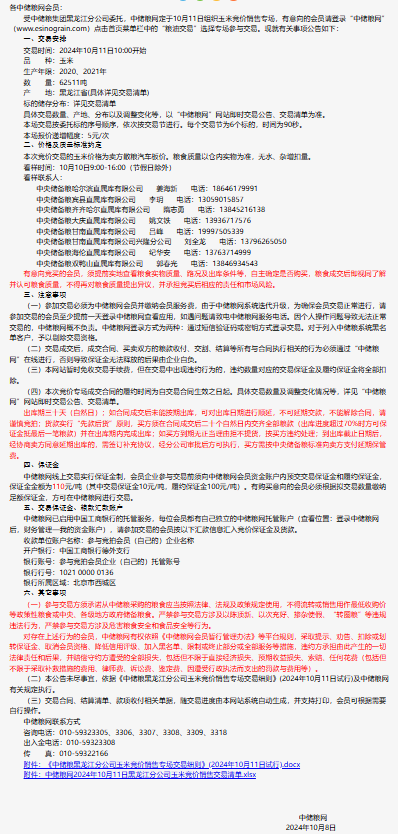 2024年10月11日中儲糧黑龍江分公司玉米競價銷售專場公告