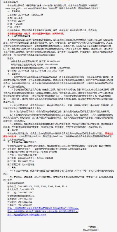 2024年10月11日中儲糧進口玉米(非轉基因)競價銷售專場公告