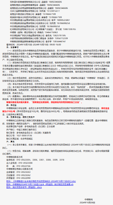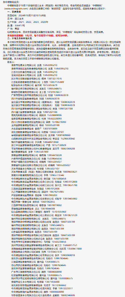 2024年10月11日中儲糧進口玉米(轉基因)競價銷售專場公告