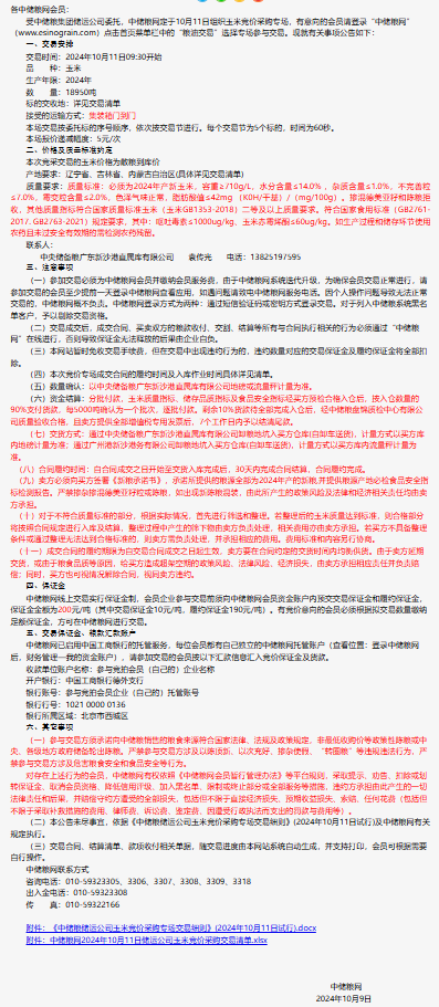 2024年10月11日中儲糧儲運公司玉米競價采購專場公告