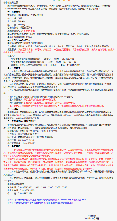 2024年10月12日中儲糧北京分公司玉米競價采購專場公告