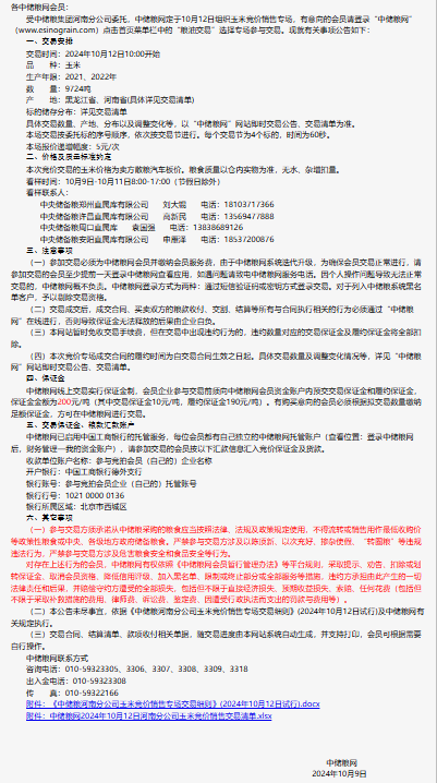 2024年10月12日中儲糧河南分公司玉米競價銷售專場公告