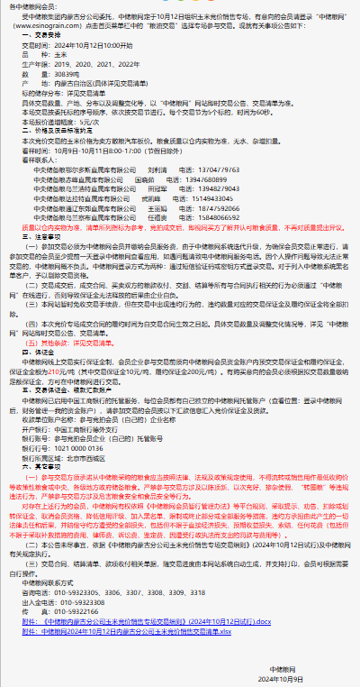 2024年10月12日中儲糧內蒙古分公司玉米競價銷售專場公告