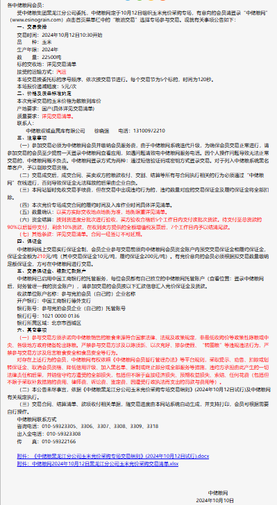 2024年10月12日中儲糧黑龍江分公司玉米競價采購專場公告