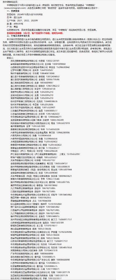 2024年10月25日中儲糧進口玉米(轉基因)競價銷售專場公告