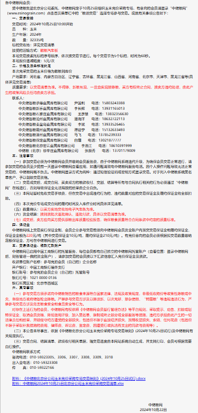2024年10月25日中儲糧北京分公司玉米競價采購專場公告