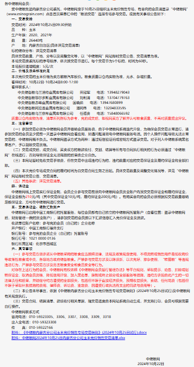 2024年10月25日中儲糧內蒙古分公司玉米競價銷售專場公告