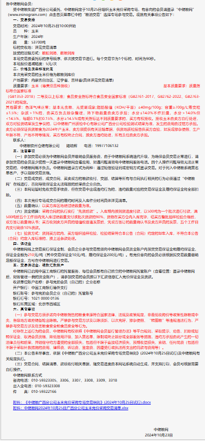 2024年10月25日中儲糧廣西分公司玉米競價采購專場公告