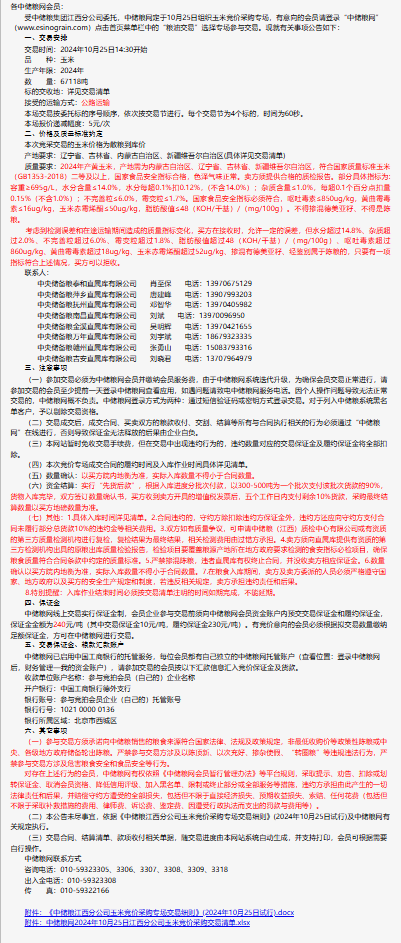 2024年10月25日中儲糧江西分公司玉米競價采購專場公告