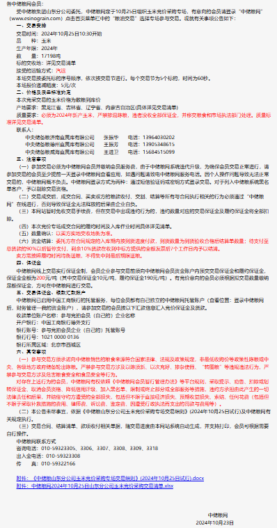 2024年10月25日中儲糧山東分公司玉米競價采購專場公告
