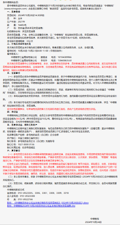 2024年10月28日中儲糧吉林分公司玉米競價銷售專場公告