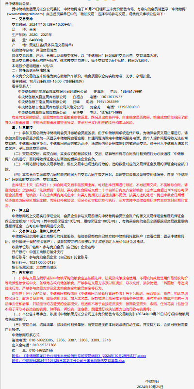 2024年10月29日中儲糧黑龍江分公司玉米競價銷售專場公告