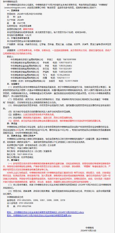 2024年10月29日中儲糧北京分公司玉米競價采購專場公告