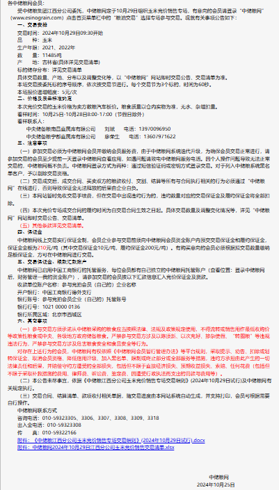 2024年10月29日中儲糧江西分公司玉米競價銷售專場公告