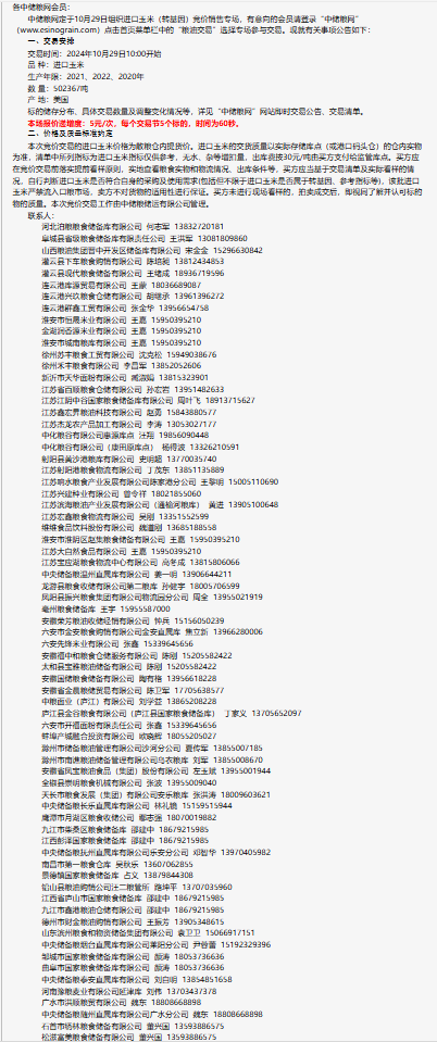 2024年10月29日中儲糧進口玉米(轉基因)競價銷售專場公告