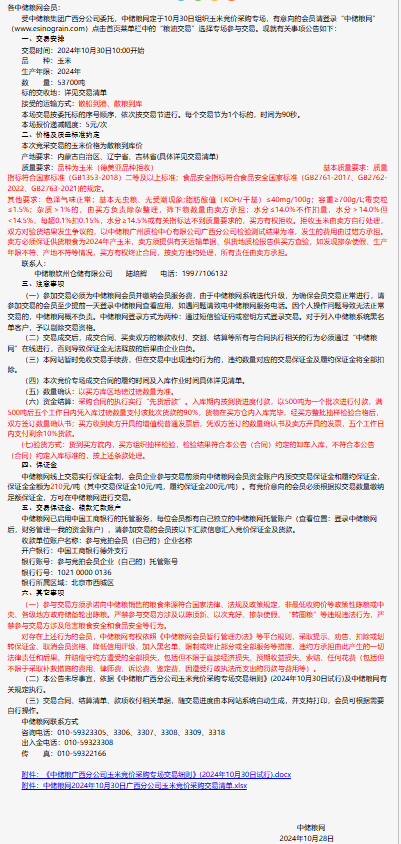2024年10月30日中儲糧廣西分公司玉米競價采購專場公告