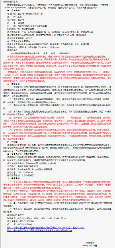 2024年10月31日中儲糧遼寧分公司玉米競價銷售專場公告