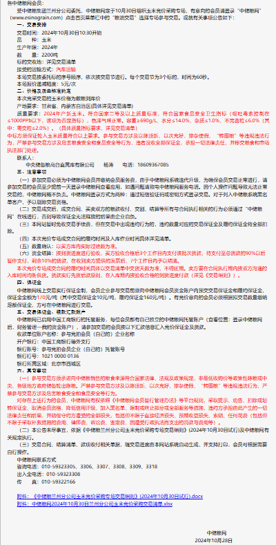 2024年10月30日中儲糧蘭州分公司玉米競價采購專場公告