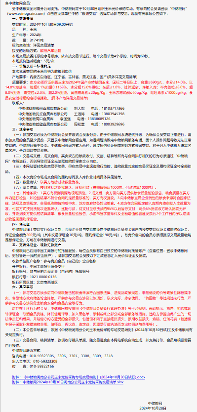 2024年10月30日中儲糧河南分公司玉米競價采購專場公告
