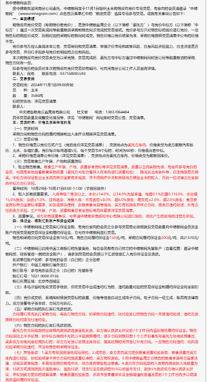 2024年11月1日中儲糧河南分公司玉米購銷雙向競價交易專場公告