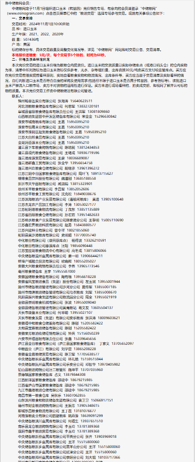 2024年11月1日中儲糧進口玉米(轉基因)競價銷售專場公告