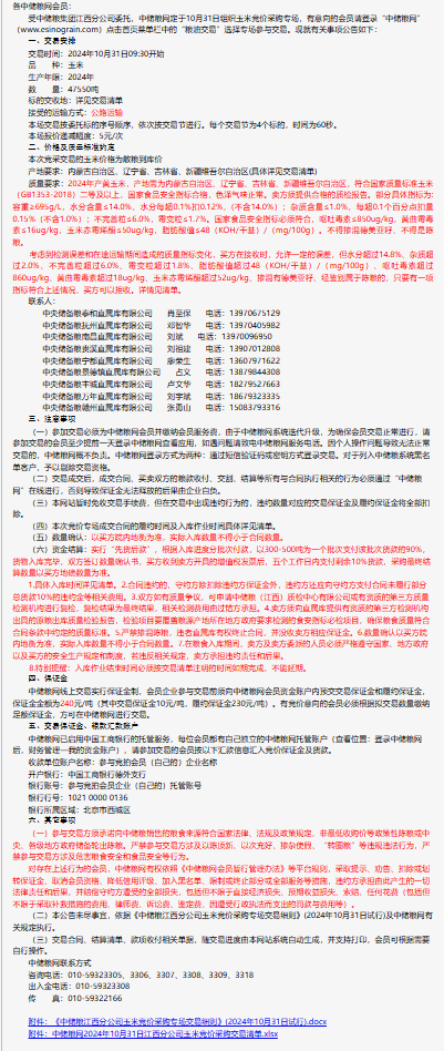 2024年10月31日中儲糧江西分公司玉米競價采購專場公告