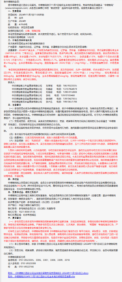 2024年11月1日中儲糧江西分公司玉米競價采購專場公告