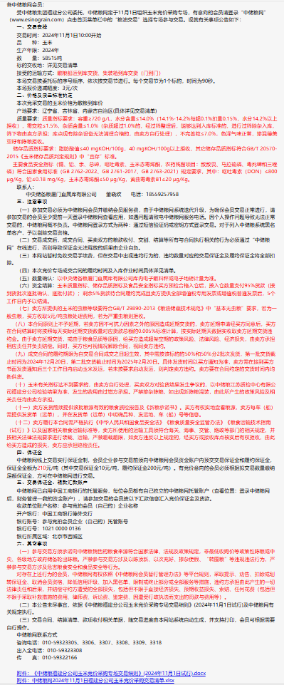 2024年11月1日中儲糧福建分公司玉米競價采購專場公告