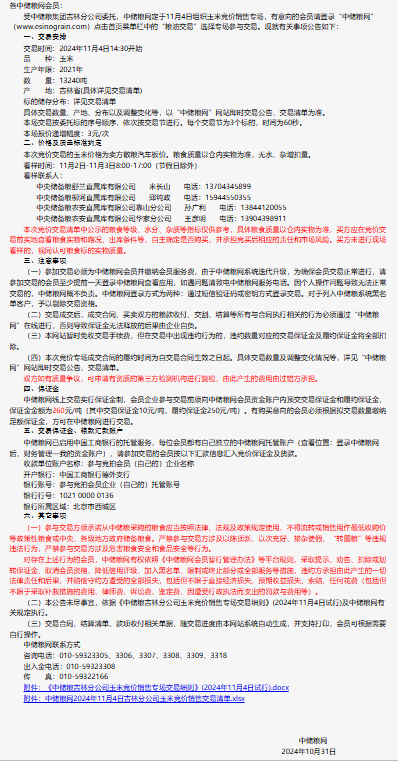 2024年11月4日中儲糧吉林分公司玉米競價銷售專場公告
