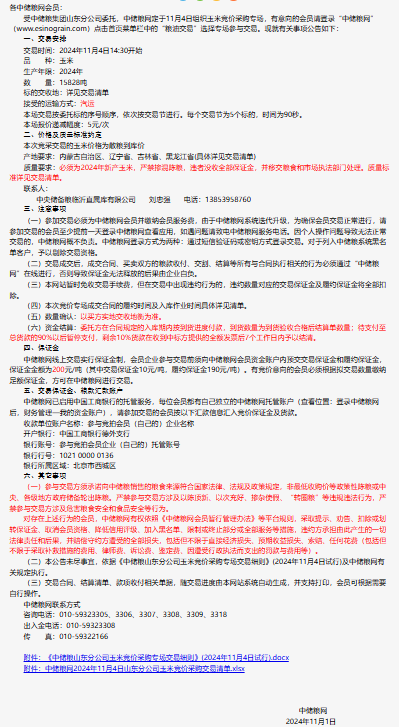 2024年11月4日中儲糧山東分公司玉米競價采購專場公告