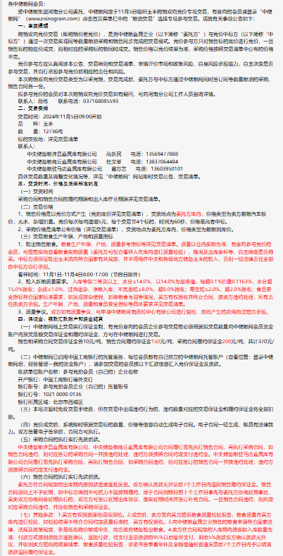 2024年11月5日中儲糧河南分公司玉米購銷雙向競價交易專場公告