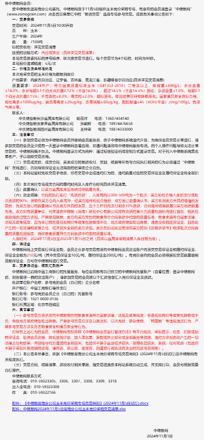 2024年11月5日中儲糧湖南分公司玉米競價采購專場公告