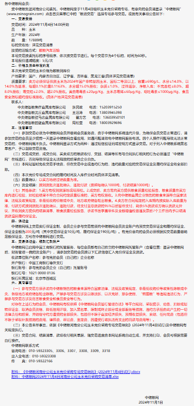 2024年11月4日中儲糧河南分公司玉米競價采購專場公告