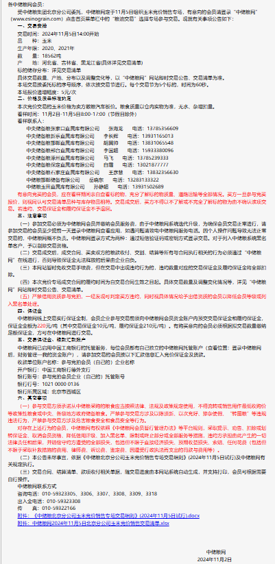2024年11月5日中儲糧北京分公司玉米競價銷售專場公告