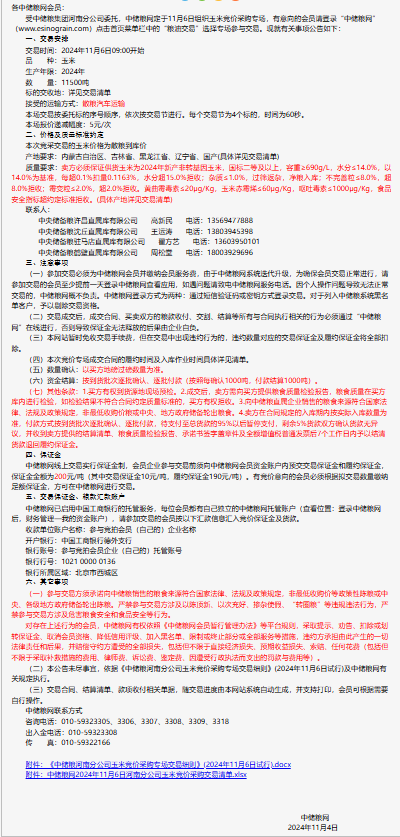 2024年11月6日中儲糧河南分公司玉米競價采購專場公告