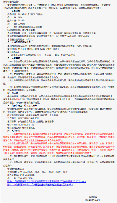 2024年11月7日中儲糧河南分公司玉米競價銷售專場公告