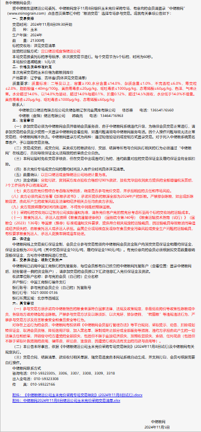 2024年11月8日中儲糧儲運公司玉米競價采購專場公告