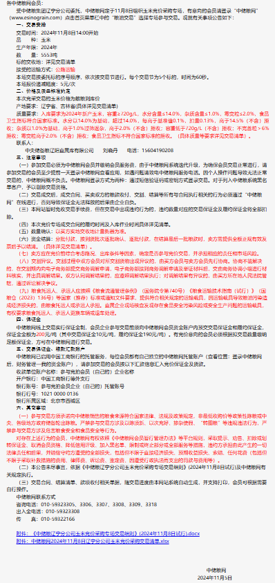 2024年11月8日中儲糧遼寧分公司玉米競價采購專場公告