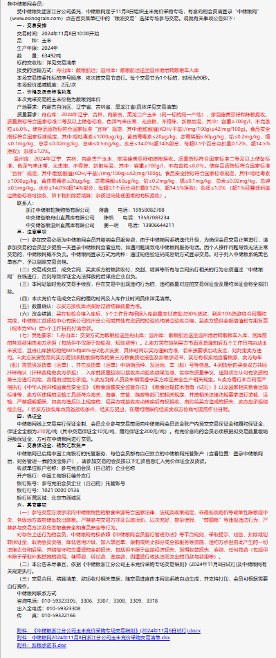 2024年11月8日中儲糧浙江分公司玉米競價采購專場公告
